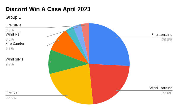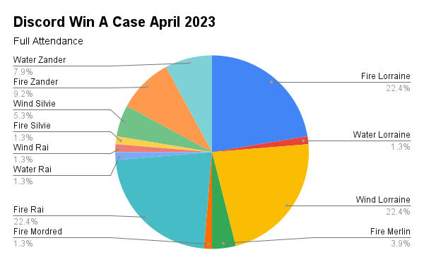 | Fire Lorraine | 40 | 18% | 1st Place (Win A Case April, DOA TTS#3 & Marketplace TTS#1) |